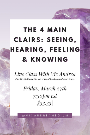 In this live 45-minute class, we’ll explore the four main psychic perception styles, often referred to as the clairs: seeing, hearing, feeling, and knowing.